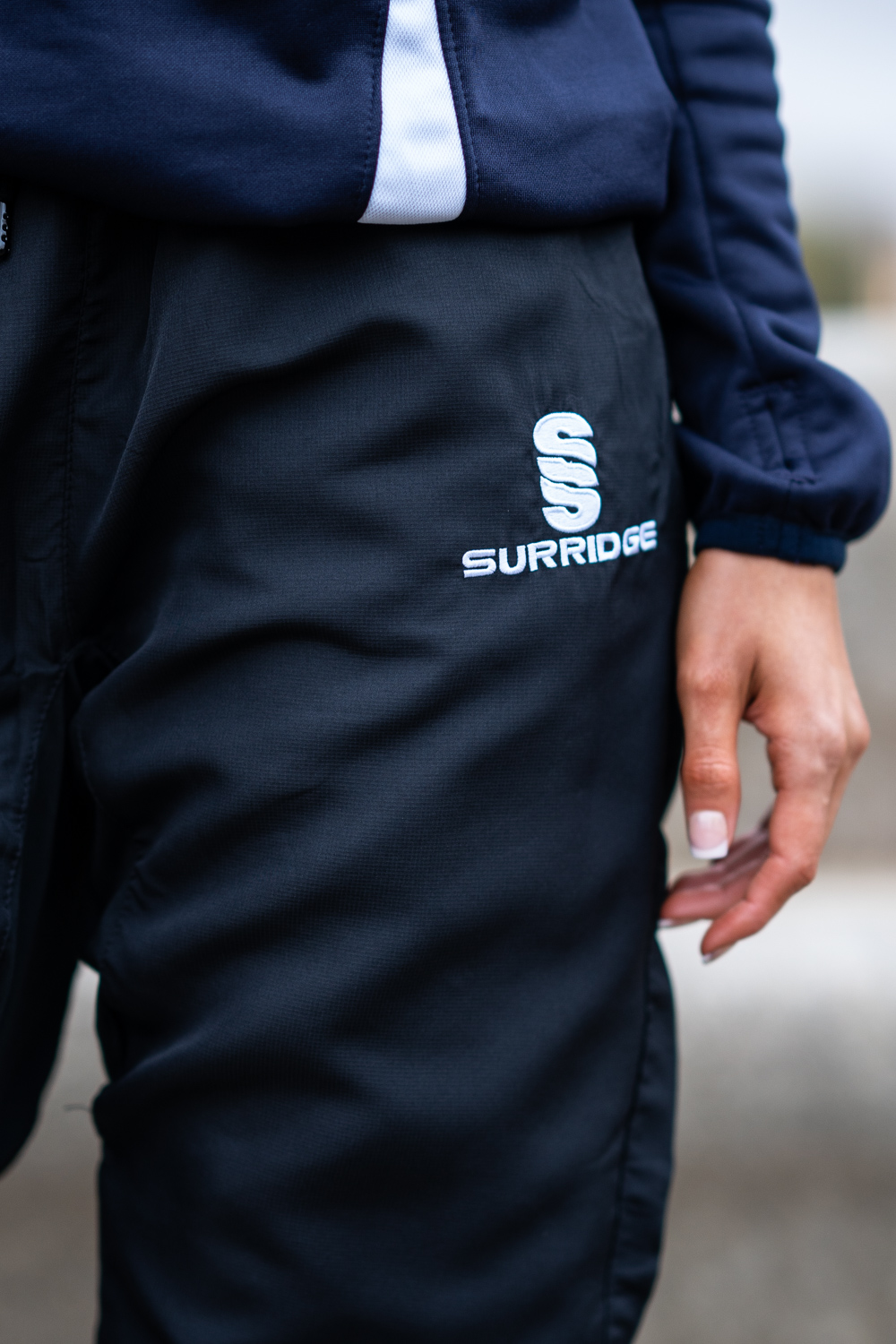 The Blade Ripstop Pants are made with a matte texture Ripstop-Polyester blend, with mesh upper lining and Nylon Tafeta lower lining. The Lycra gusset adds flexibility, comfort and extra strength. It comes with an inner waist draw cord, zipped pockets and a 12" side seam lower zip at hem. They are designed for a modern slimmer leg fit from knee downwards, with a slightly tapered leg. To finish, an embroidered SS Surridge logo is located on the left thigh.